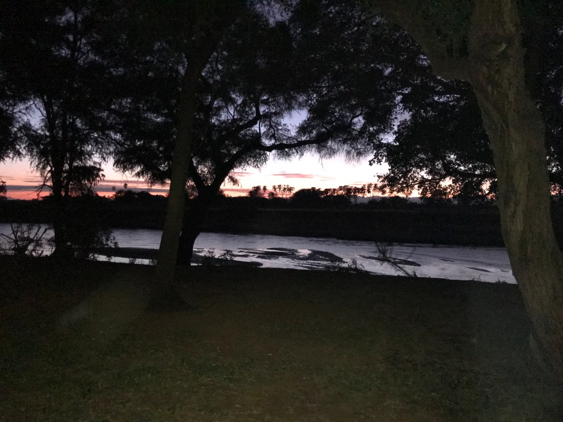 There’s absolutely nothing more wonderful than waking up to a beautiful morning in the woods. The sky was painted with hues of orange. The sun was peeping behind the trees. The muddy waters of the river had taken a smooth silvery tint in the morning light.
