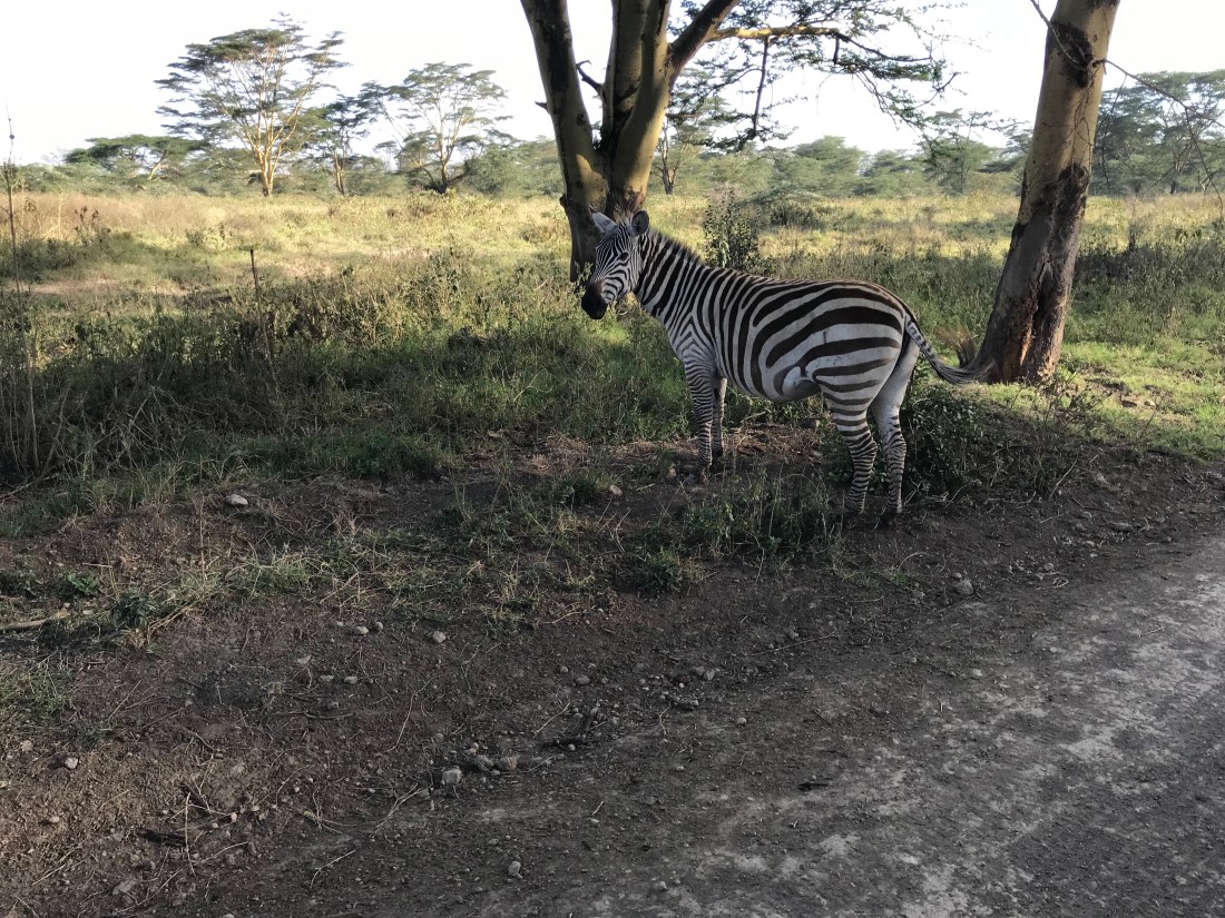 Our rhino hunt began post lunch. I saw waterbuck, zebras and giraffes (there are no elephants in Nakuru). The patterns on the body of giraffe and zebra are quite different in this forest, as compared to those in Samburu – they are thick and bold.
