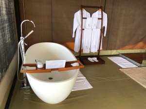 After about an hour, I decided to head back to The Cliff and enjoy the luxuries of the tent. There was a small bottle of Moët (complimentary) in the mini-bar. The chef offered to send some crackers, cheese and grapes. What more can one ask for? I lounged in the comfortable deck chair, sipped the champagne soaking in the sights of the vast blue lake with hillocks beyond it. (Is this how heaven looks and feels like? I hope so.)