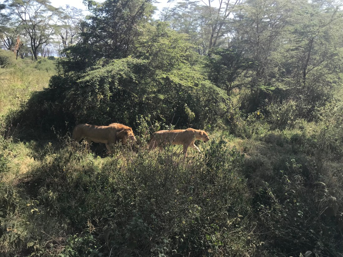 Lawrence didn’t waste another minute, he accelerated the jeep through the narrow jungle road, while I held on tight to my seat. In just about 15 minutes, we saw a lion and lioness behind the bushes. They were sleeping, then got up, came right up to our jeep and decided to go back for a nap again. It was a thrilling experience to see Mr. and Mrs. Lion first talk amicably, quite lovey lovey; suddenly the mood changed and they started to argue about something. (Is such inconsistent mood and behavior common in couples across species, humans included?)