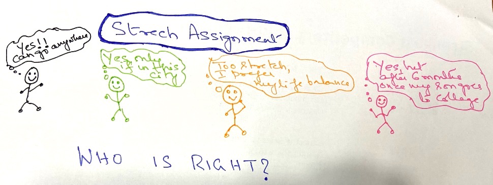 Let’s take an example: Say, a good assignment providing strong exposure and bright prospects for accelerated career growth has come up. Employees may respond in different ways: