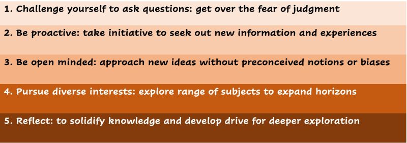 – Be proactive: Take the initiative to seek out new information and experiences.