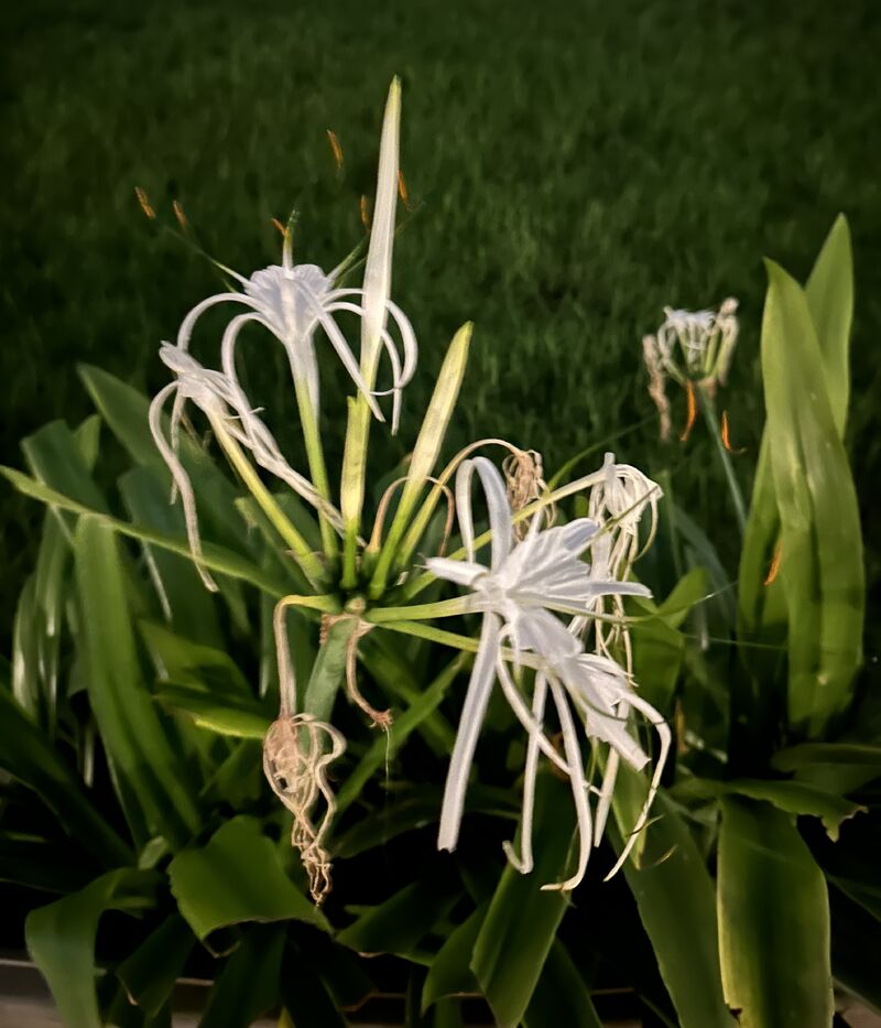 I took this picture during my morning walk in my apartment garden. Apart from the beauty of these snow-white flowers, what caught my attention was the different life stages: a tiny bud, one ready to bloom, a lily in full bloom, one wilting, and other dried.