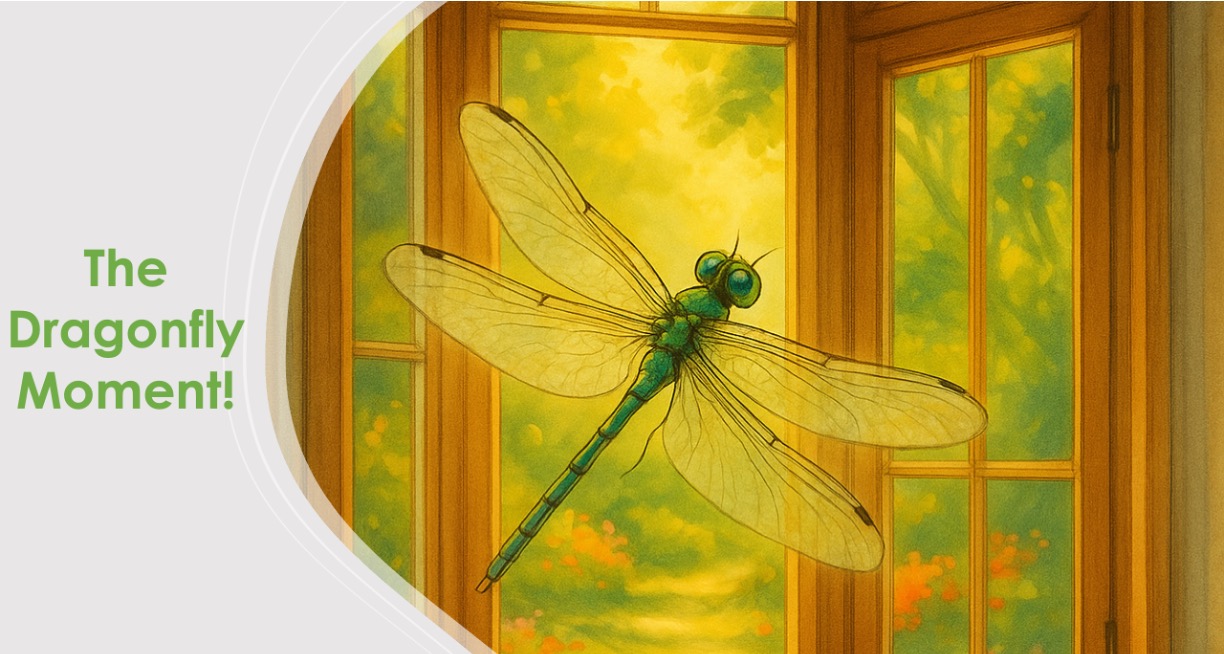 Soon, a buzzing sound broke my focus. A dragonfly was trapped inside the room. It was desperately trying to escape through the glass window. It flew toward the same spot, hitting the pane with full force, only to bounce back in confusion.
