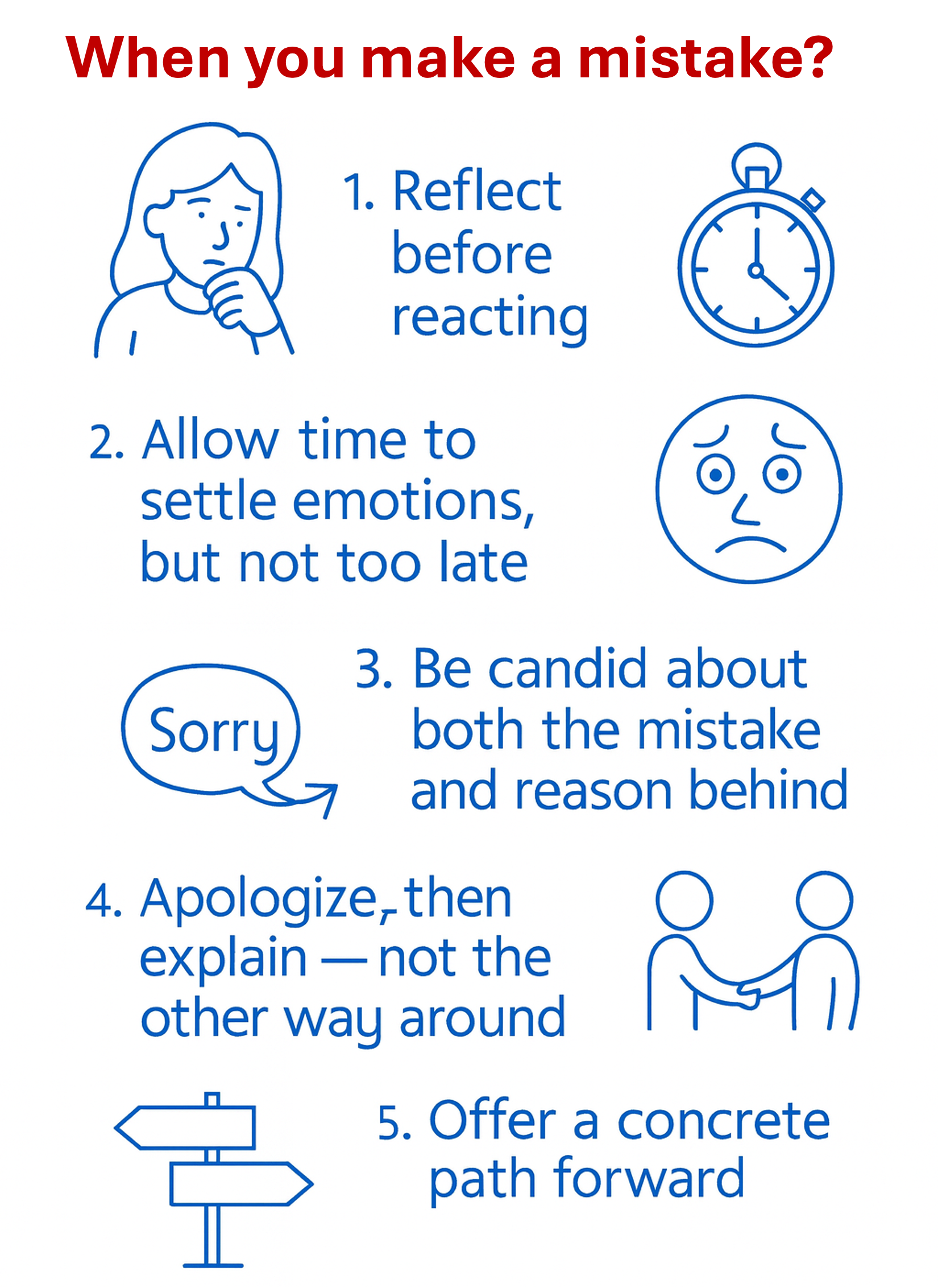 A couple of hours later she came into my office and asked for five minutes. What followed was a short, powerful recovery conversation. Here’s what she did: